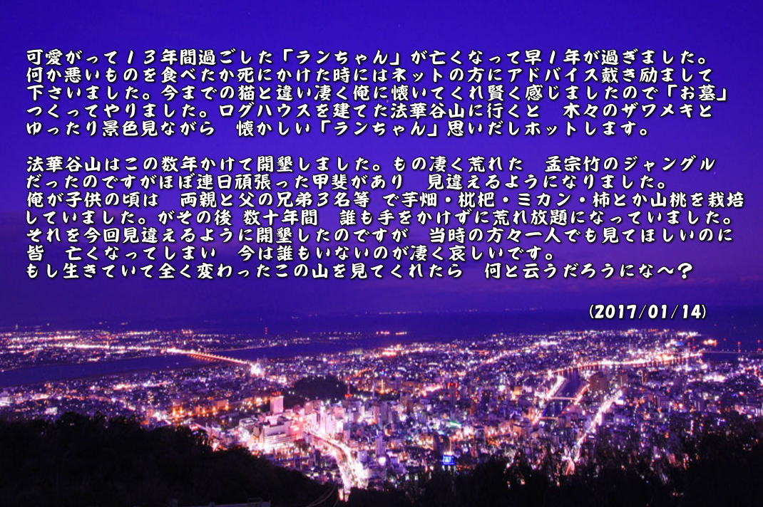 俺 山が好きでよく行きますが ランちゃんの墓のまえを通ると 元気だった時を思い出します。