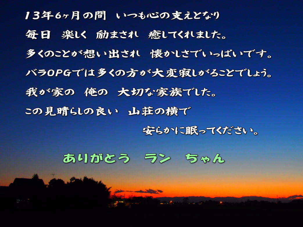 2002年 6月 野良猫の子 ランちゃん生まれる。