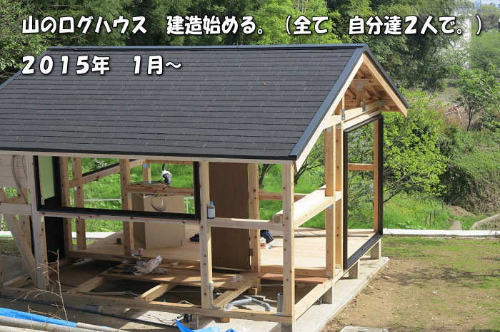 山のコンクリート路・舗装・型板つくり・ログハウス建造 等  2015年1月〜2016年4月 やっと完成する。